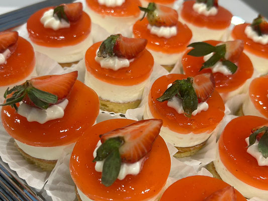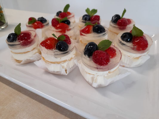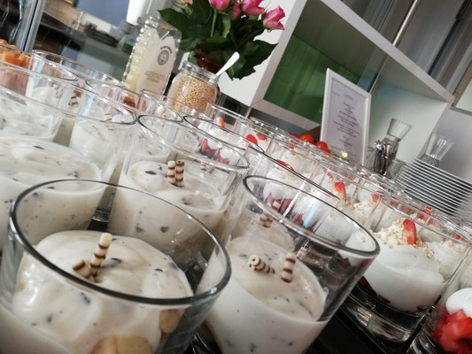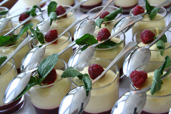 Süßer Abschluss mit Stil – von cremig bis fruchtig, als Mini-Dessert im Glas oder auf der Dessertstation. Gerne auch vegan oder glutenfrei.