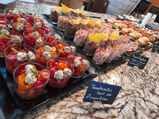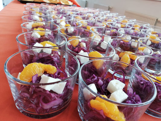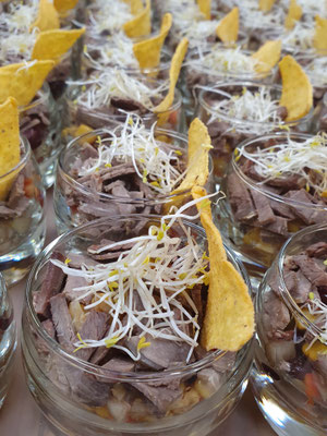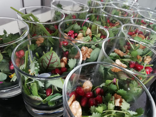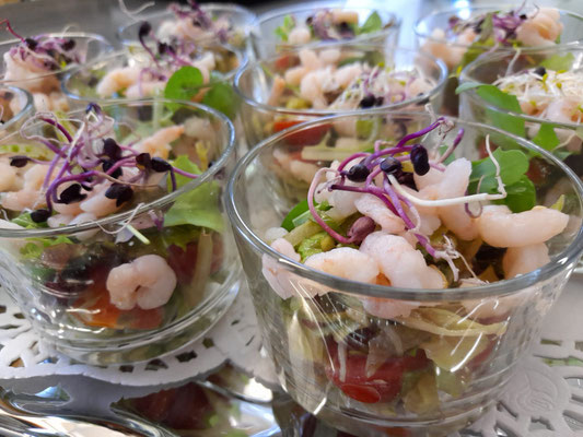 Unsere Salate im Glas sind nicht nur ein optischer Genuss, sondern auch eine erfrischende und gesunde Option für Ihre Gäste.