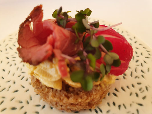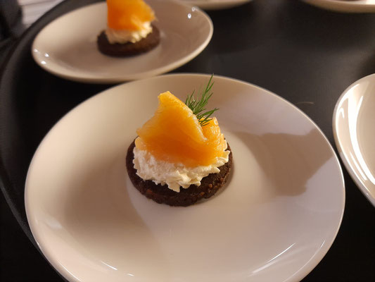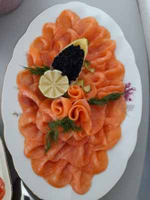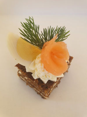 ● Räucherlachs, Krengervais und frische Dille und Wachtelei
