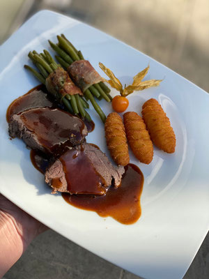 Wählen Sie aus unseren sorgfältig ausgewählten Hauptspeisen – je zwei Fleischgerichte und ein vegetarisch/veganes Gericht – die perfekte Ergänzung für Ihr sommerliches Menü. Unsere Kreationen vereinen frische Zutaten mit raffinierten Geschmacksnoten und sorgen für unvergessliche Gaumenfreuden.