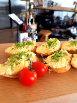 ● Eiersalat im Glas: Herzhafter Eiersalat mit gekochtem Ei, Joghurt, Senf, frischem Schnittlauch und Paprika.