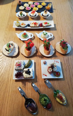 Begrüßen Sie Ihre Gäste mit einer Vielfalt an raffinierten Fingerfood-Variationen, die sowohl das Auge als auch den Gaumen erfreuen.
