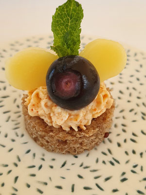 ● Zitronen Ricotta mit gegrilltem Pfirsich und Minze